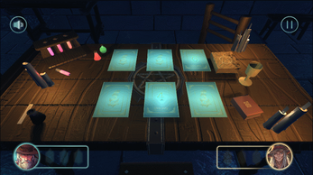 Es un juego de cartas de adivinanza donde cada ronda el jugador y el enemigo eligen una carta (son aleatoriamente creadas en cada partida) y la que tenga mayor valor gana una gema, si sale un empate es punto para el enemigo. El que tenga mas gemas al final gana.